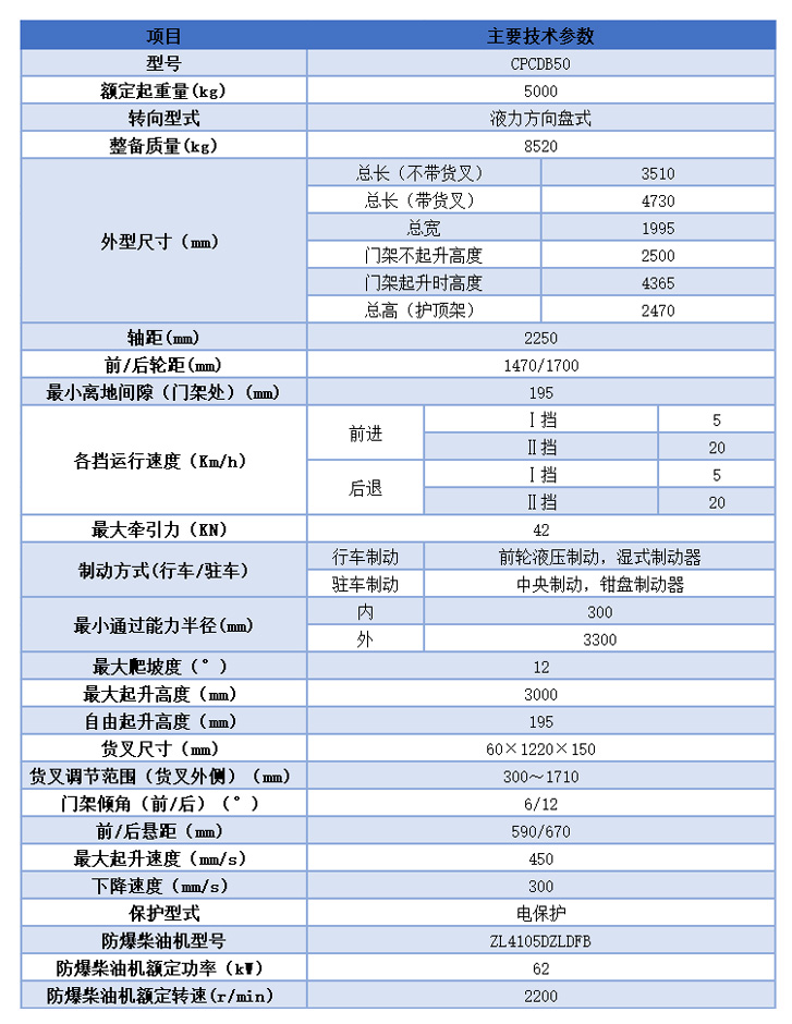 WC1.9E防爆柴油機(jī)無(wú)軌膠輪車(chē)產(chǎn)品描述 WC1.9E型防爆柴油機(jī)無(wú)軌膠輪車(chē)是我公司根據(jù)中小型煤礦井下的運(yùn)輸實(shí)際要求研制開(kāi)發(fā)的一種新型運(yùn)載工具,是一款以具有國(guó)Ⅲ排放標(biāo)準(zhǔn)、增壓中冷、電控高壓共軌噴射型式的ZL495DZLDFB防爆柴油機(jī)為動(dòng)力、輸出功率48kW、液力傳動(dòng)、濕式制動(dòng)、四輪驅(qū)動(dòng)的煤礦井下無(wú)軌式運(yùn)輸機(jī)械。 該車(chē)的排放性能符合GB20891-2014非道路移動(dòng)機(jī)械用柴油機(jī)排氣污染物排放限值及測(cè)量方法(中國(guó)第三、第四階段)。防爆性能符合MT990-2006礦用防爆柴油機(jī)通用技術(shù)條件。 制動(dòng)型式采用濕式制動(dòng),具有工作制動(dòng)、緊急制動(dòng)和停車(chē)制動(dòng)功能,工作制動(dòng)為四輪制動(dòng)、液壓制動(dòng)、彈簧釋放、濕式制動(dòng)器;緊急制動(dòng)和停車(chē)制動(dòng)為后輪制動(dòng)、彈簧制動(dòng)、液壓釋放、濕式制動(dòng)器。有了濕式制動(dòng)系統(tǒng)的保駕護(hù)航,使車(chē)輛更加安全可靠,因系統(tǒng)故障和制動(dòng)管路發(fā)生任何故障而失壓時(shí),制動(dòng)器均能自動(dòng)實(shí)現(xiàn)制動(dòng),確保車(chē)輛的安全,特別適合于井下運(yùn)輸和爬坡需要。 車(chē)架全部采用載重汽車(chē)專(zhuān)用優(yōu)質(zhì)碳素結(jié)構(gòu)鋼510L軋制型鋼為原材料,進(jìn)一步保證了整車(chē)的強(qiáng)度。提高了整車(chē)的使用壽命。