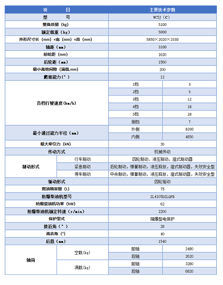 WC5J(C)防爆柴油機(jī)無軌膠輪車 |